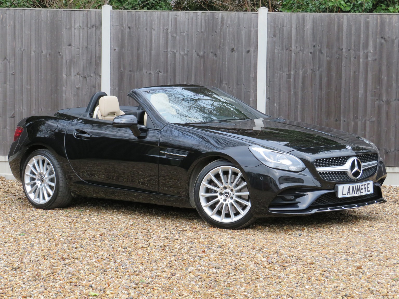 Fabulous specification March 2018 18 reg Mercedes Benz SLC 200 AMG Line petrol Roadster 9 speed Automatic finished in a truly stunning colour combination of Obsidian Black metallic with Sahara Beige full leather upholstery!