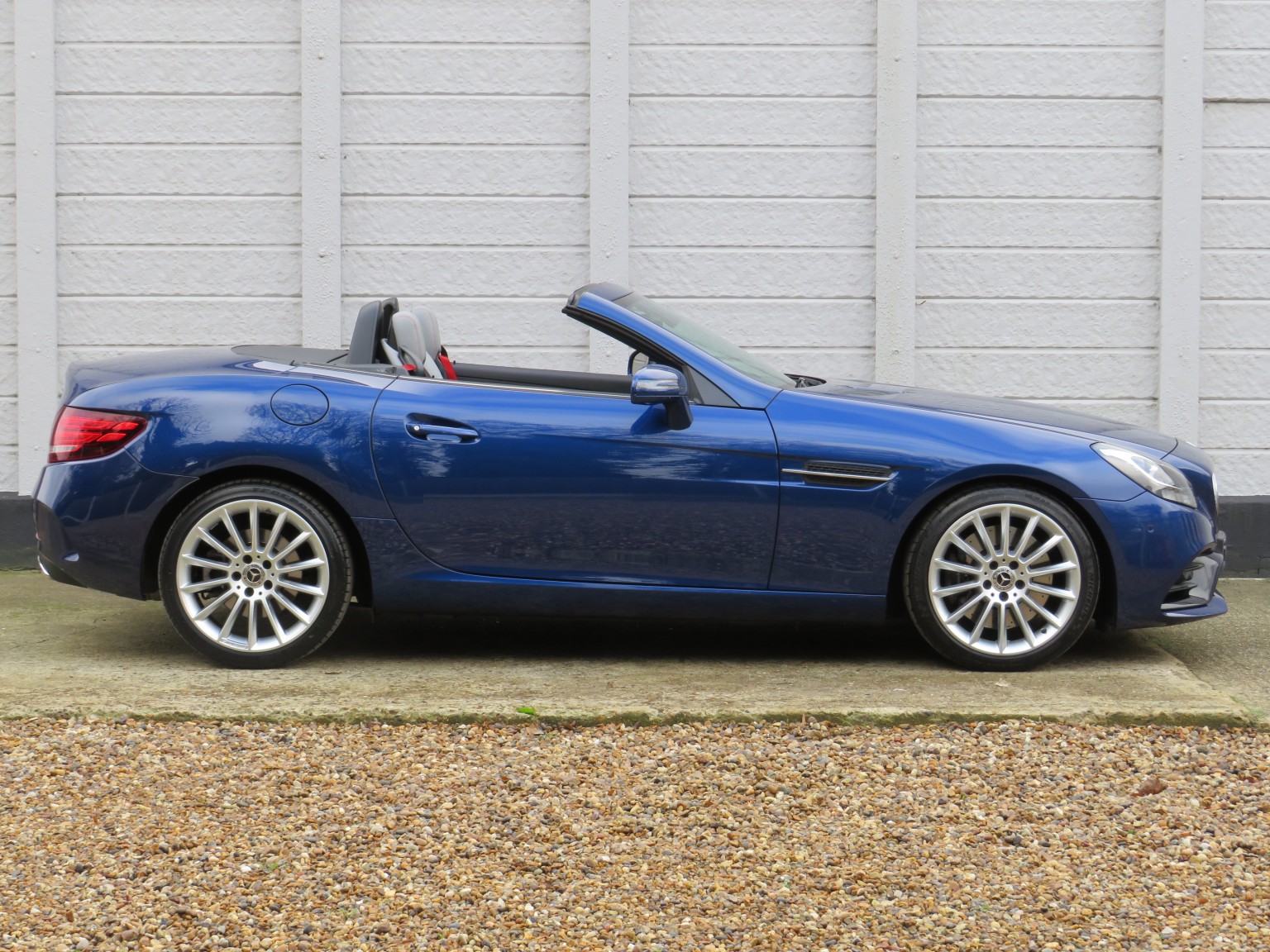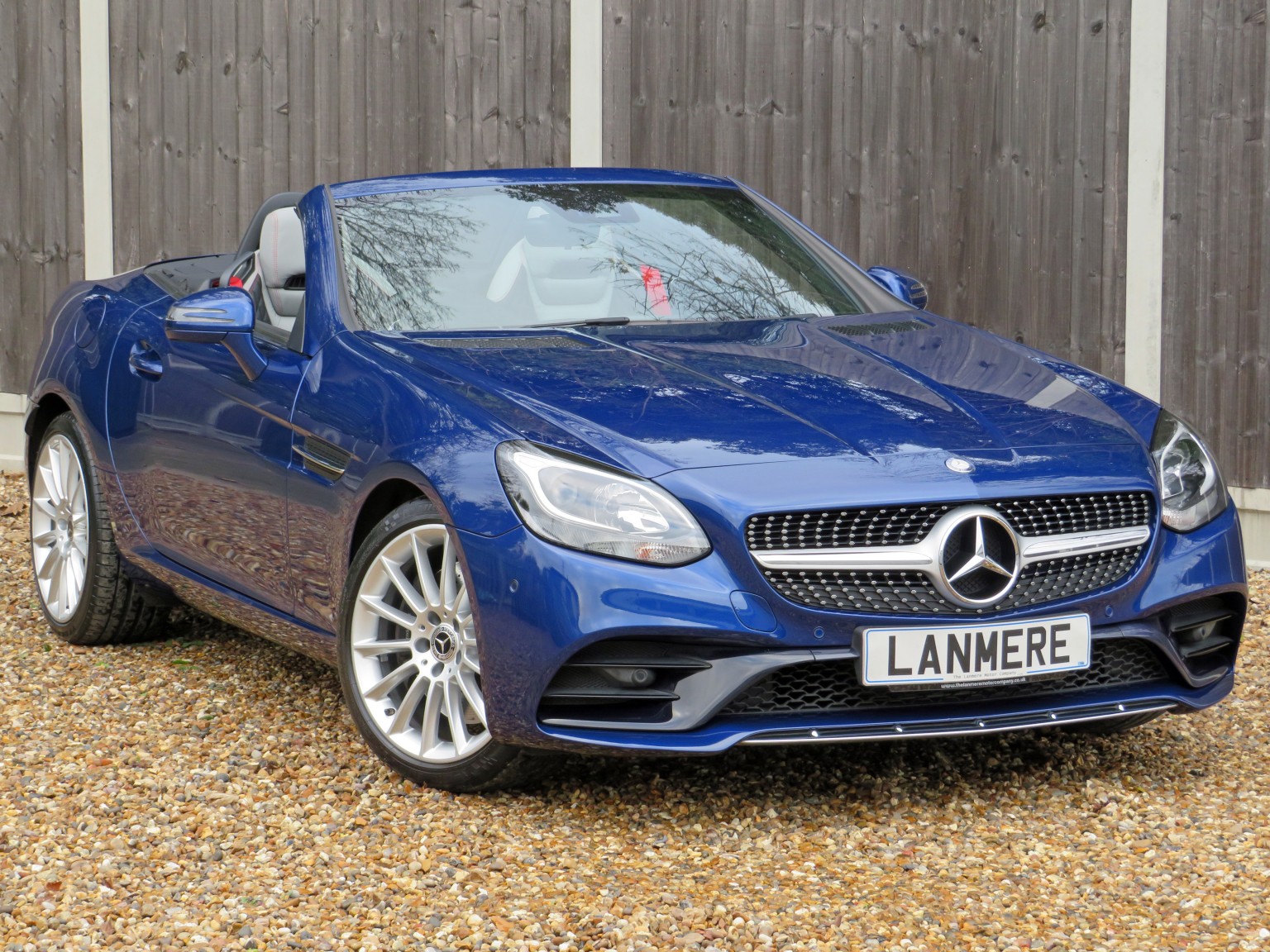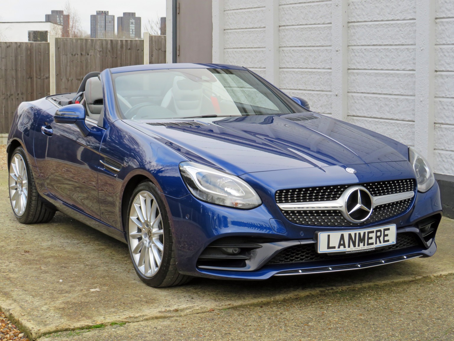 Fabulous specification April 2017 17 reg Mercedes Benz SLC 200 AMG Line petrol Roadster 9 speed Automatic finished in a truly stunning colour combination of Brilliant Blue metallic with Exclusive two tone quilted leather upholstery!