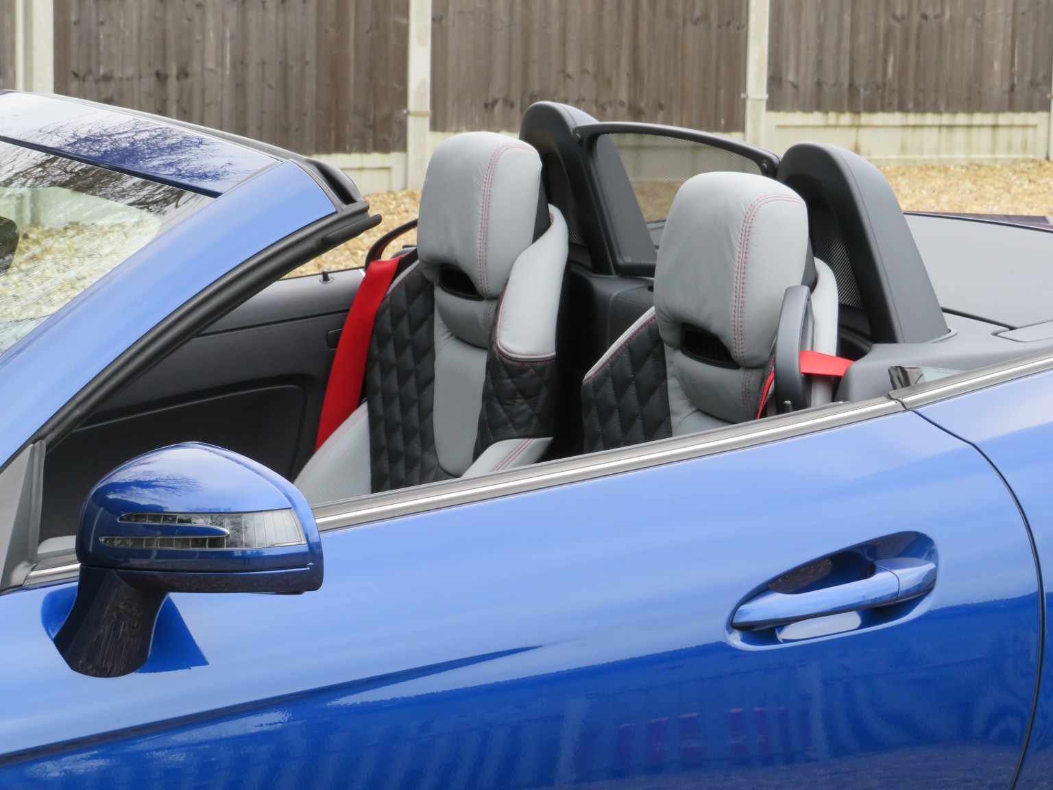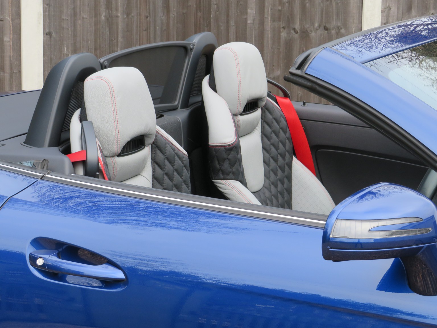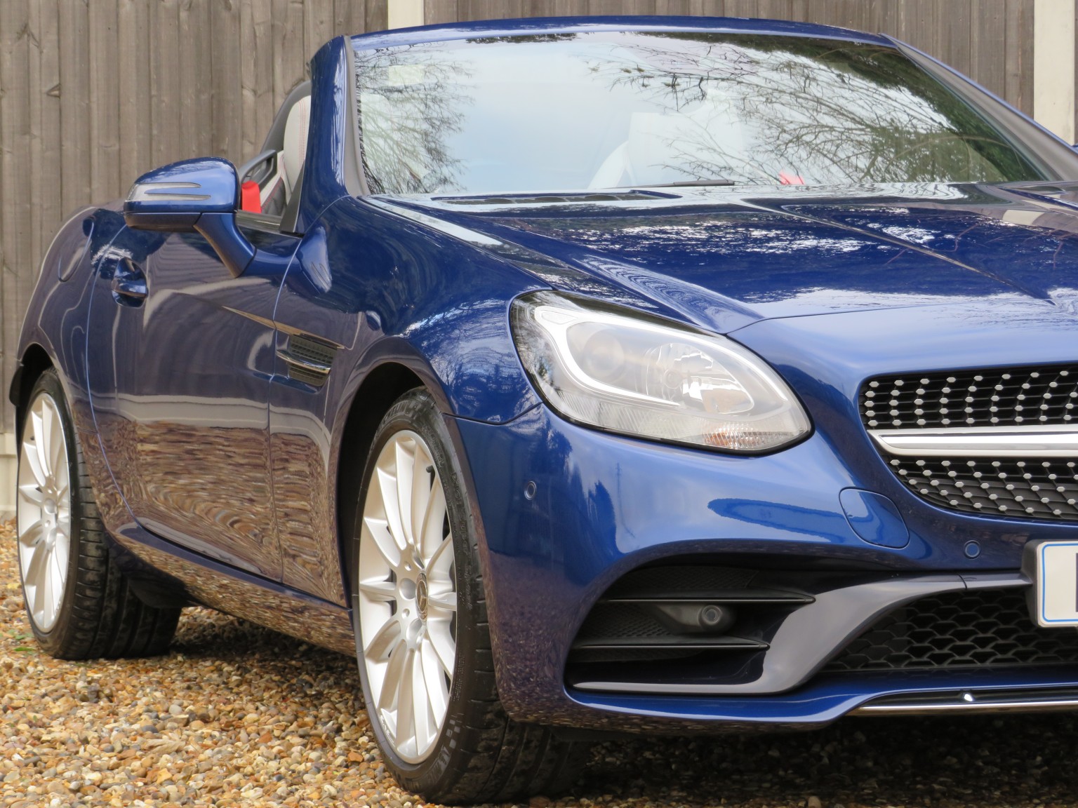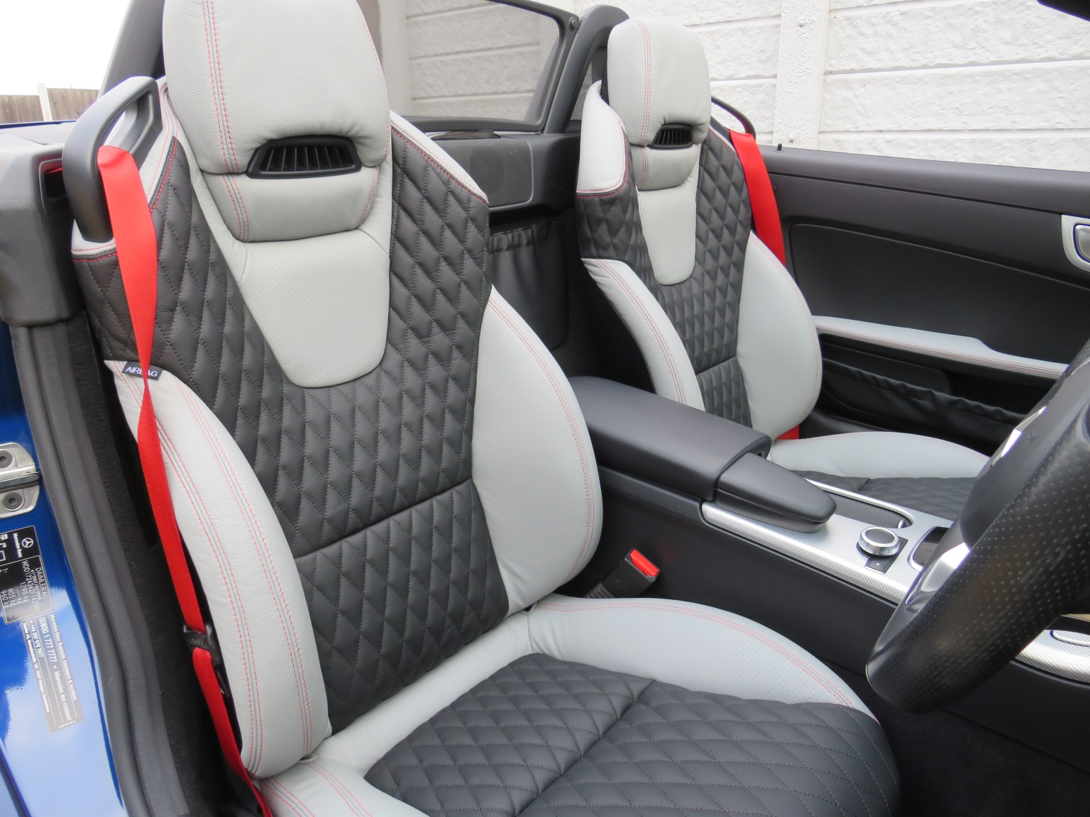 Fabulous specification April 2017 17 reg Mercedes Benz SLC 200 AMG Line petrol Roadster 9 speed Automatic finished in a truly stunning colour combination of Brilliant Blue metallic with Exclusive two tone quilted leather upholstery!