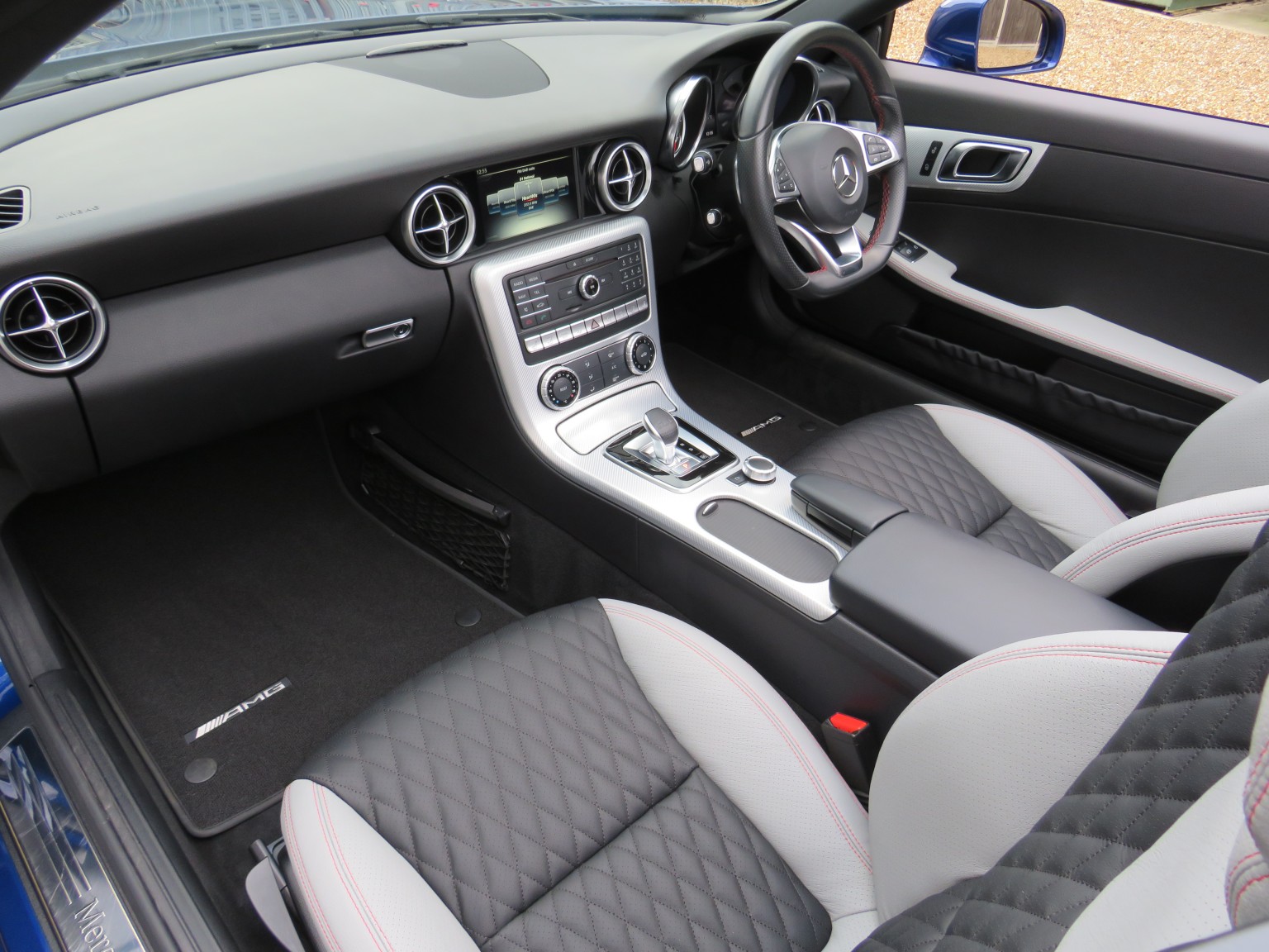 Specification includes, Exclusive two tone quilted and perforated bespoke leather upholstery finished in Crystal Grey and Black leather with detailed red stitching. Airscarf neck level heating, front and rear Parktronic parking guidance, heated seats, cup holder, SD card Satellite Navigation preparation, nine speed automatic gearbox, AMG Sports Package, AMG Styling Package, Sports suspension, 18 inch AMG multi spoke alloy wheels, auto lights, cruise control, glass roof, led running lights, Audio 20 radio system with DAB radio tuner, Bluetooth telephone, Bluetooth audio and USB connection. Multi function three spoke Sports leather steering wheel, aluminium interior trim, Euro 6 rating, over mats plus much much more!