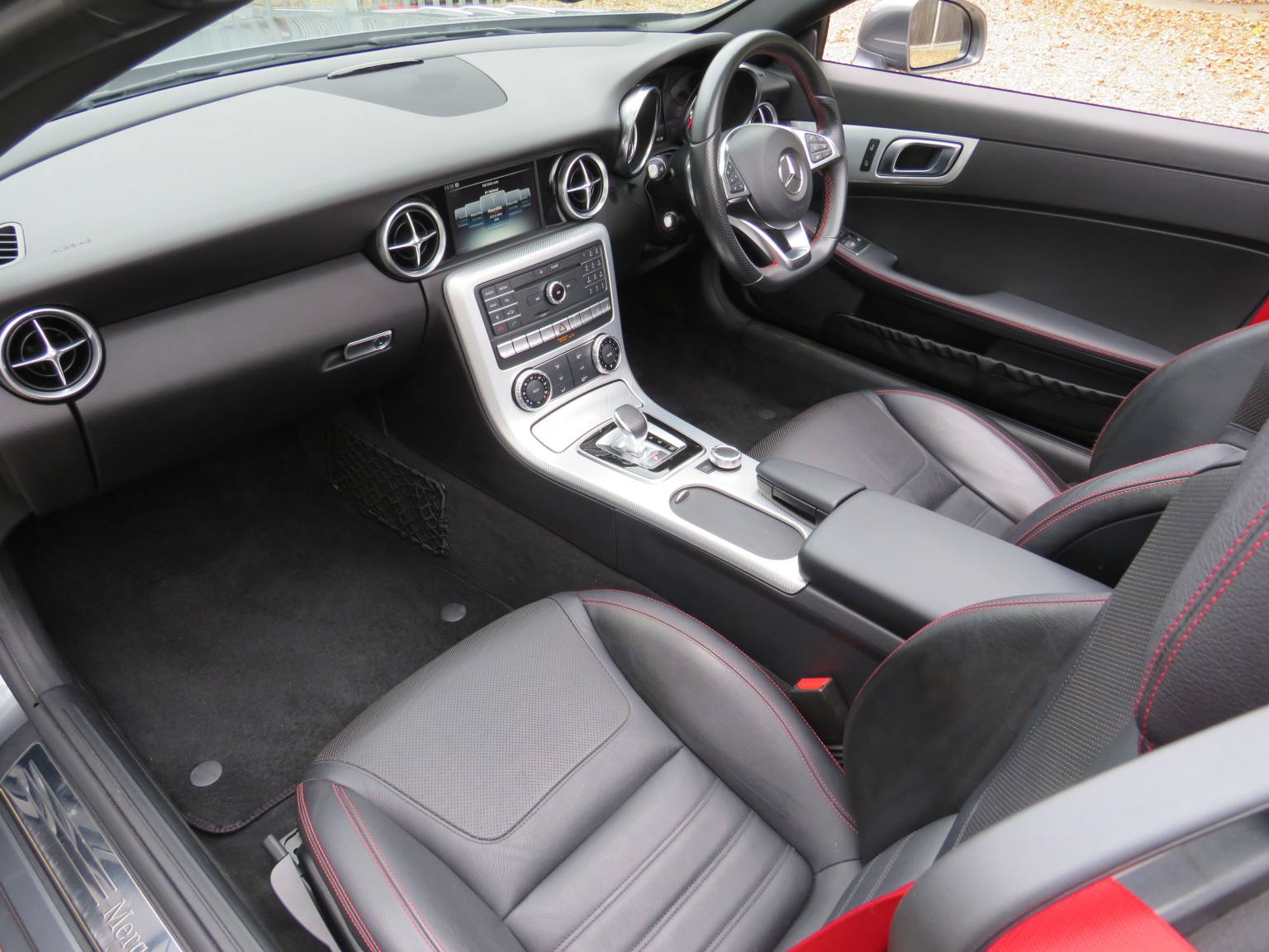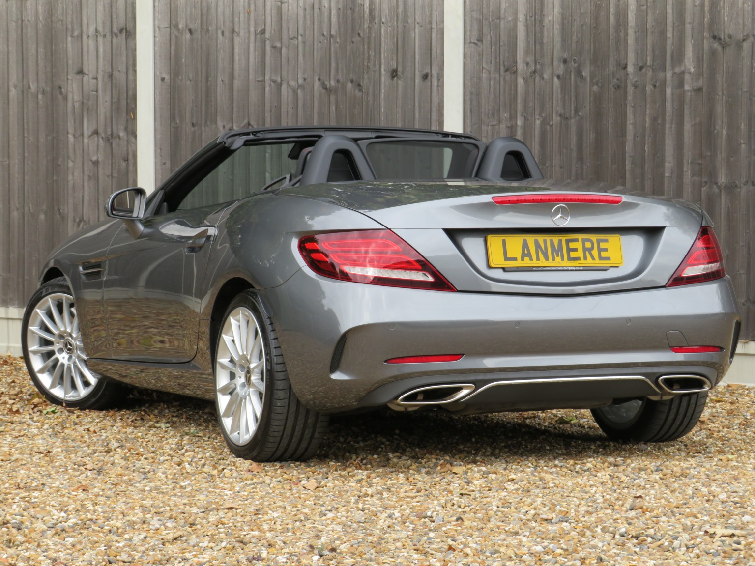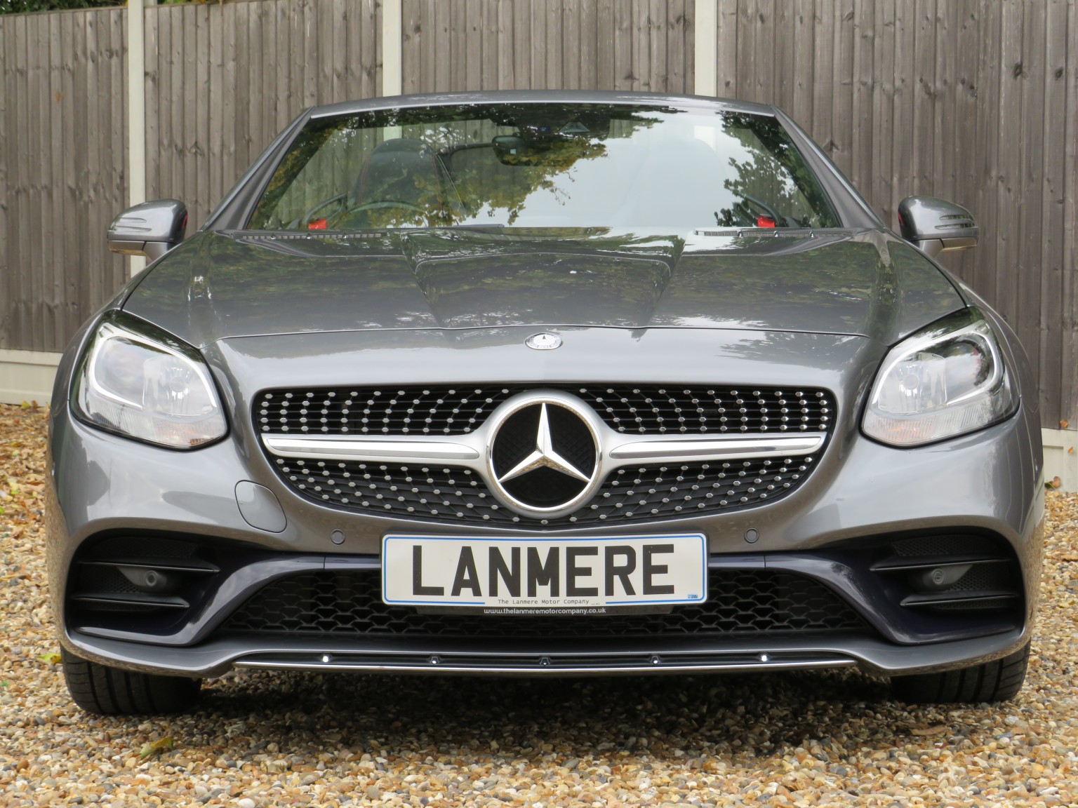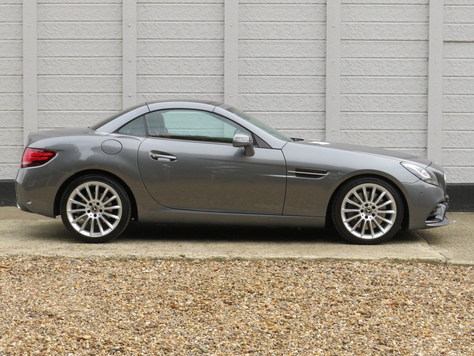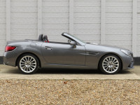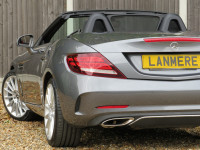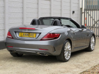 March 2017 17 reg Mercedes Benz SLC 250d AMG Line Roadster 9 speed Automatic finished in a truly stunning colour of Selenite Grey metallic with black leather upholstery.