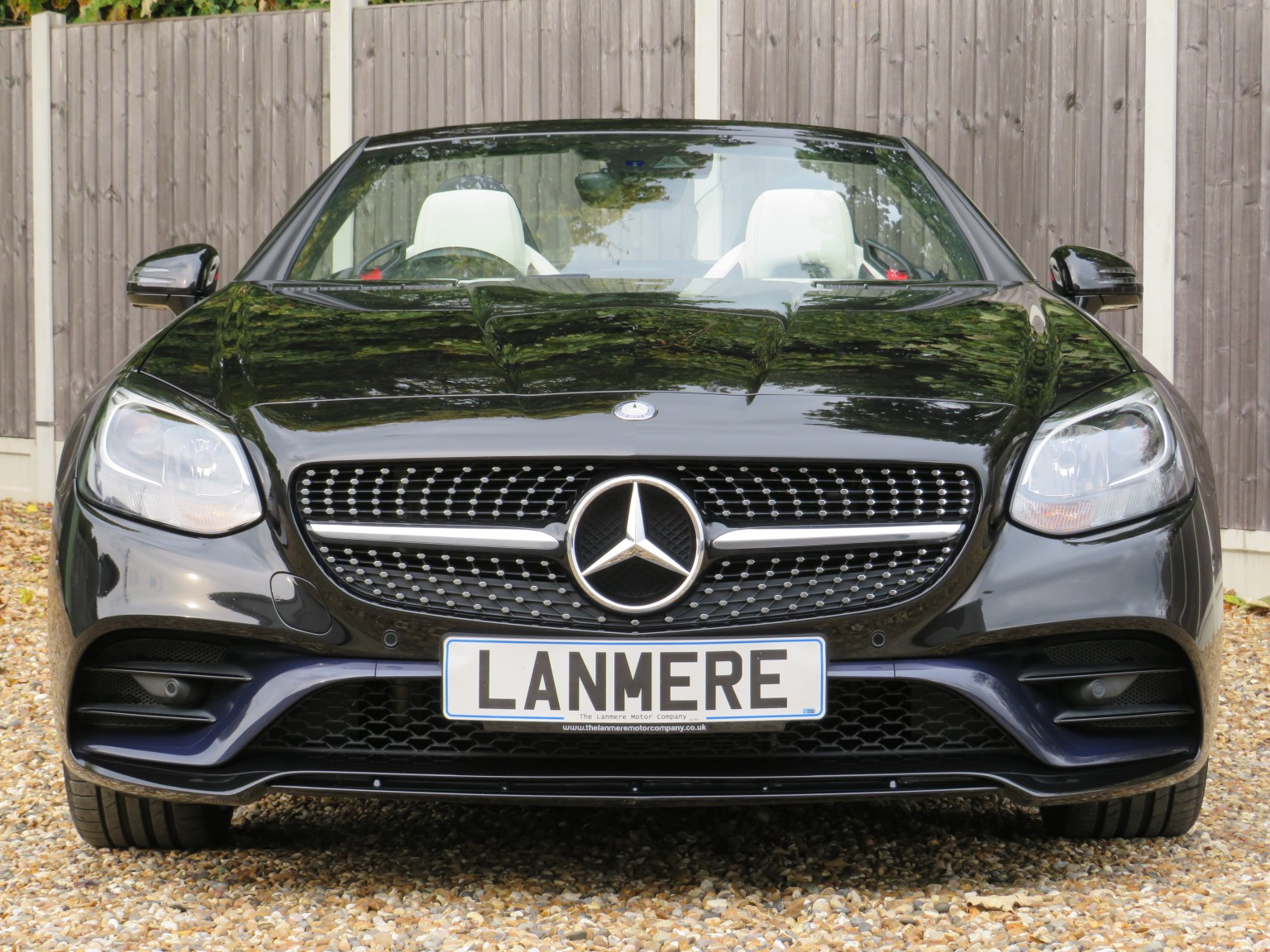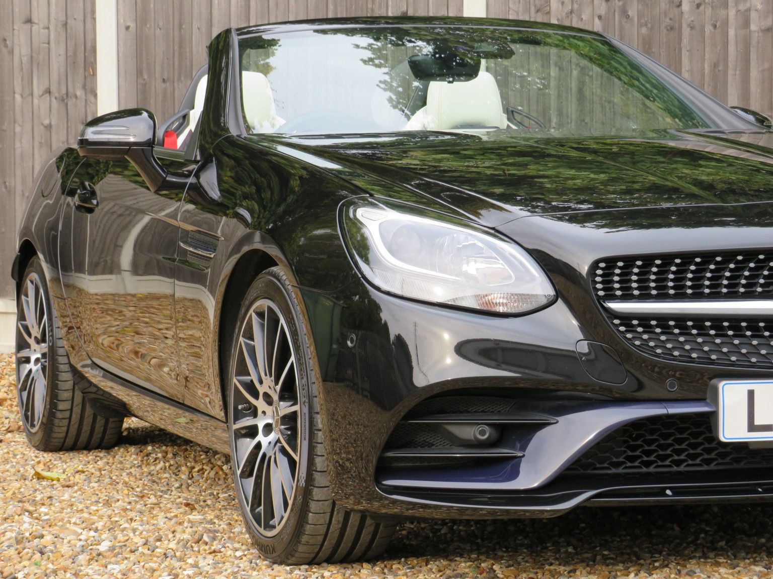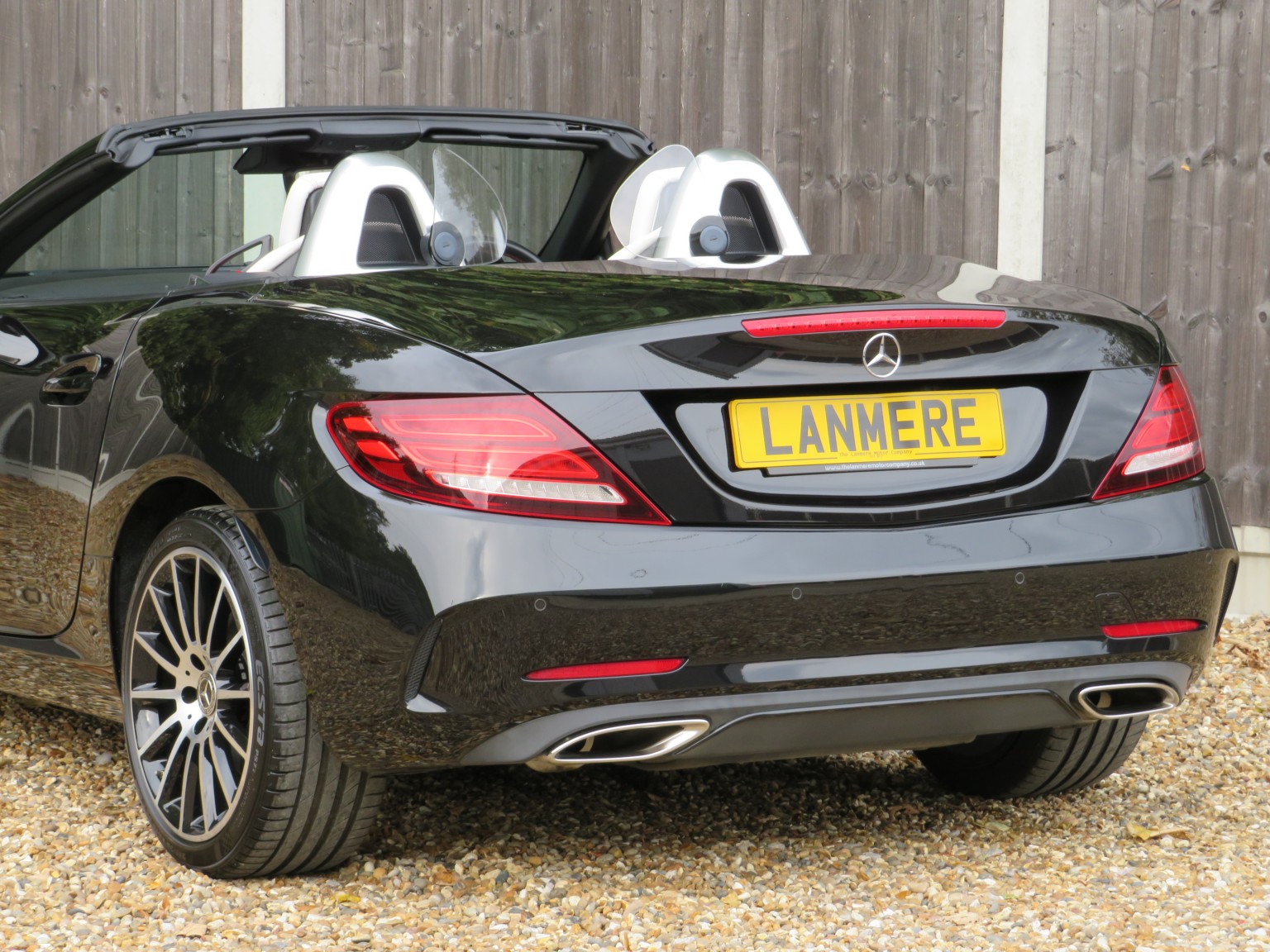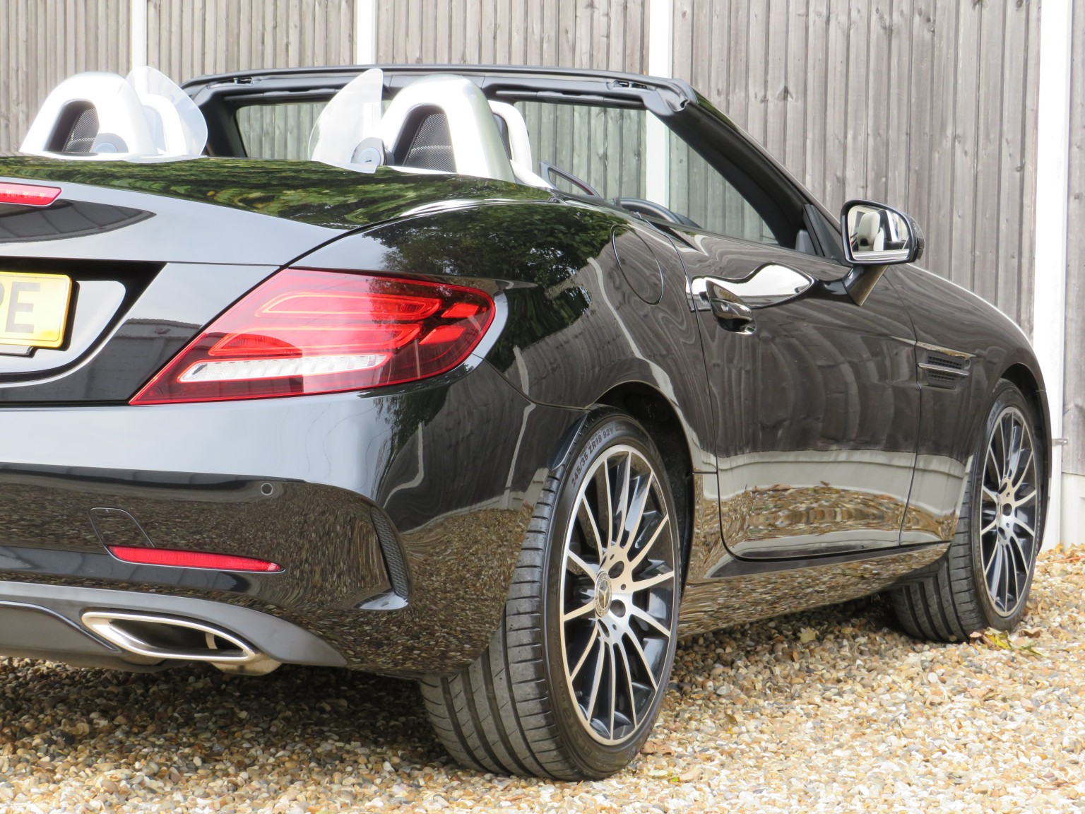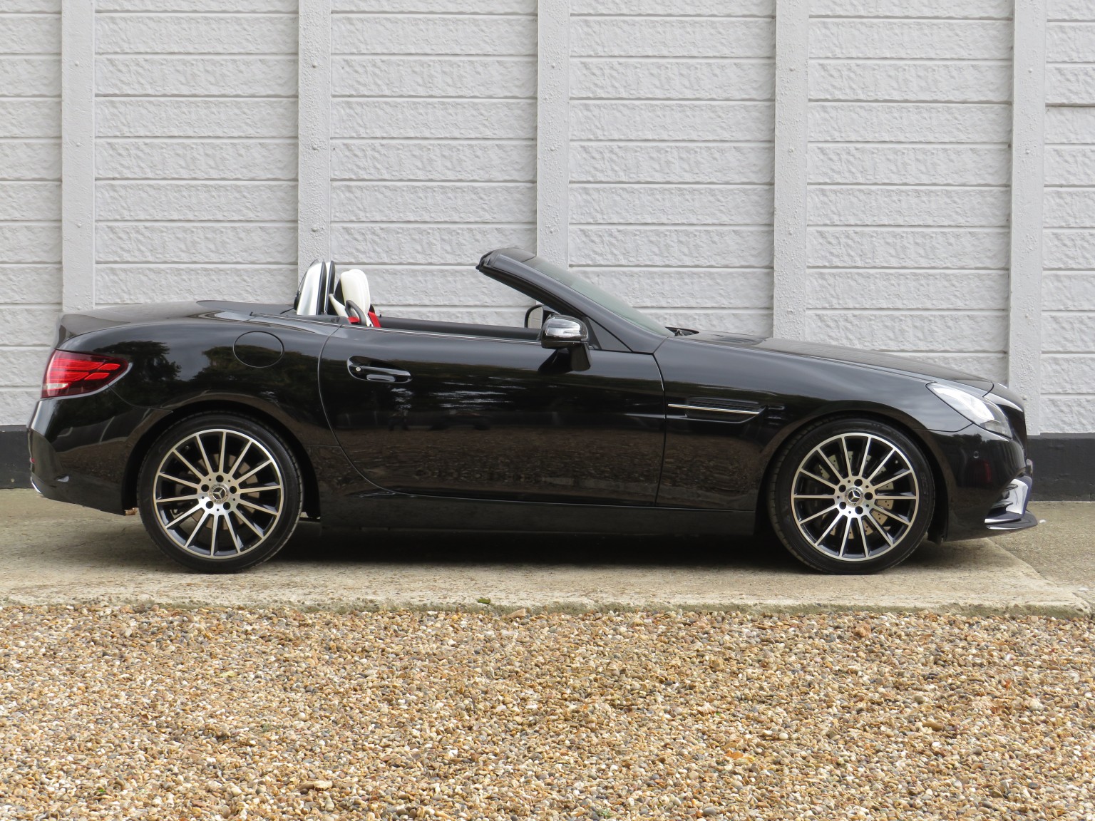 Specification includes AMG Night Package, Exclusive two tone black and white quilted and perforated bespoke leather upholstery with detailed red stitching. Airscarf neck level heating, front and rear Parktronic parking guidance, heated seats, rain sensor, cup holder, Air Guide (glass wind deflectors), aluminium roll bars, SD Satellite Navigation preparation, nine speed automatic gearbox, AMG Line Styling Package, AMG Sport Package, 18 inch AMG multi spoke alloy wheels, auto lights, cruise control, Bluetooth telephone, Bluetooth audio plus much much more!