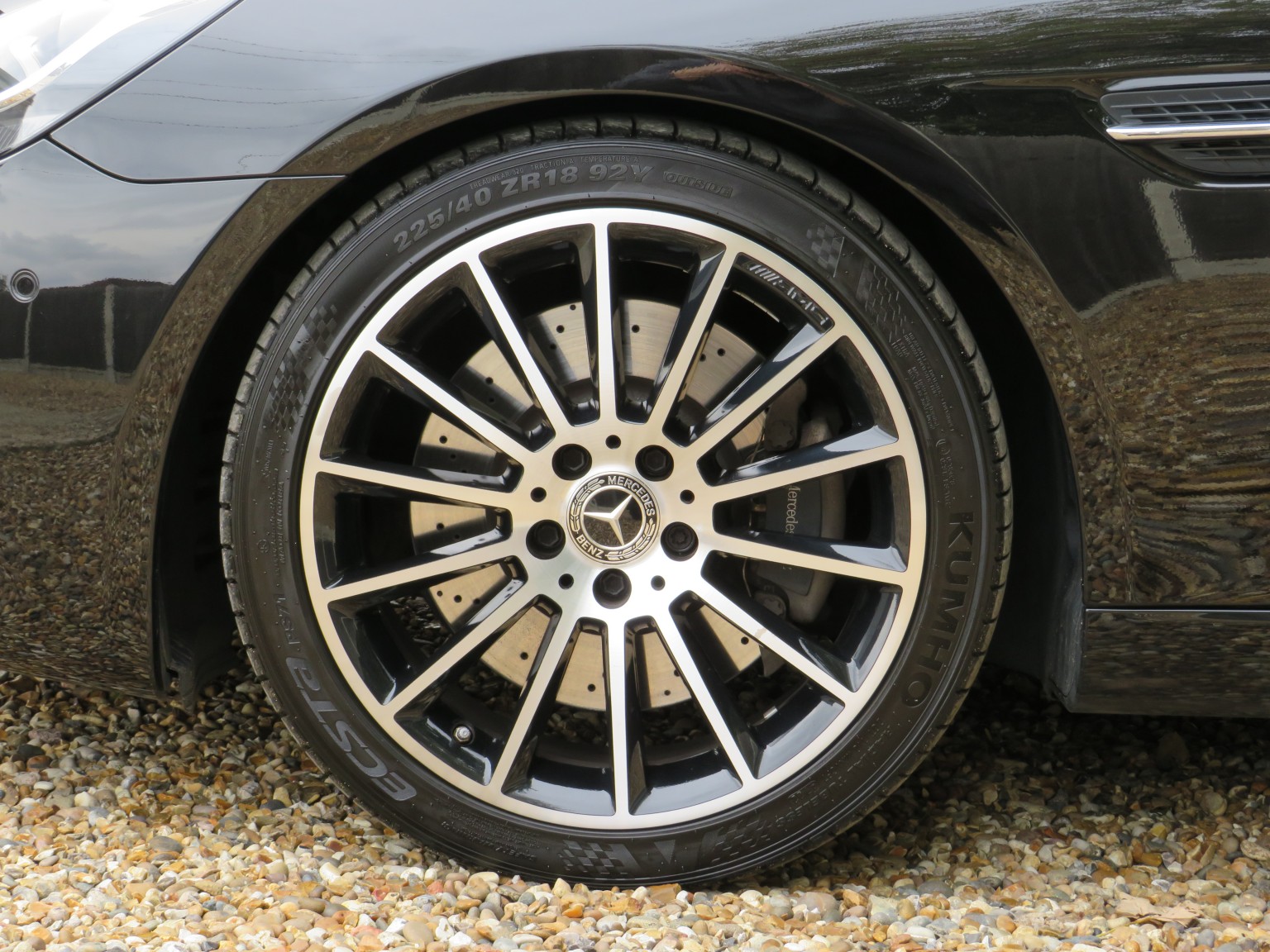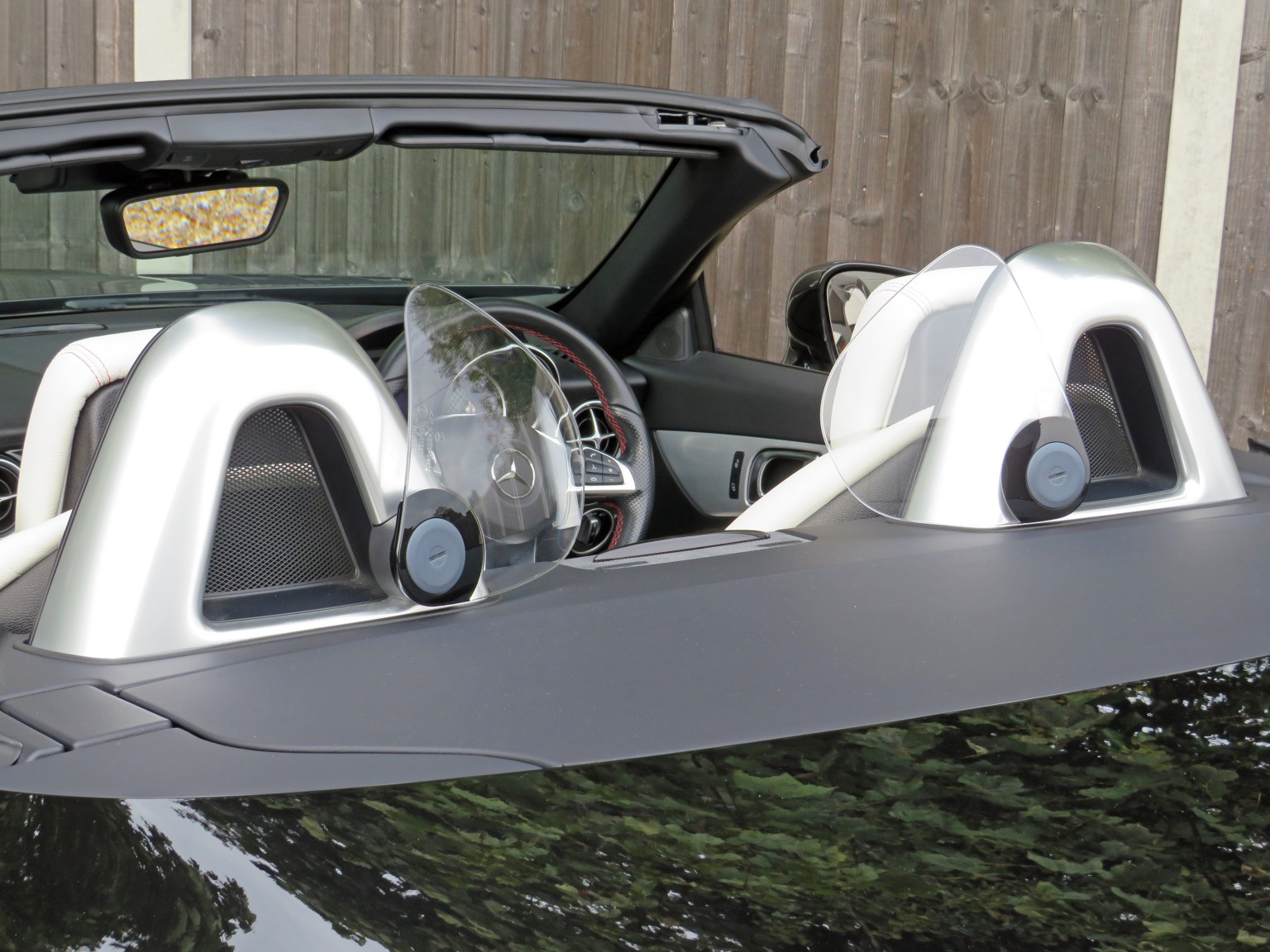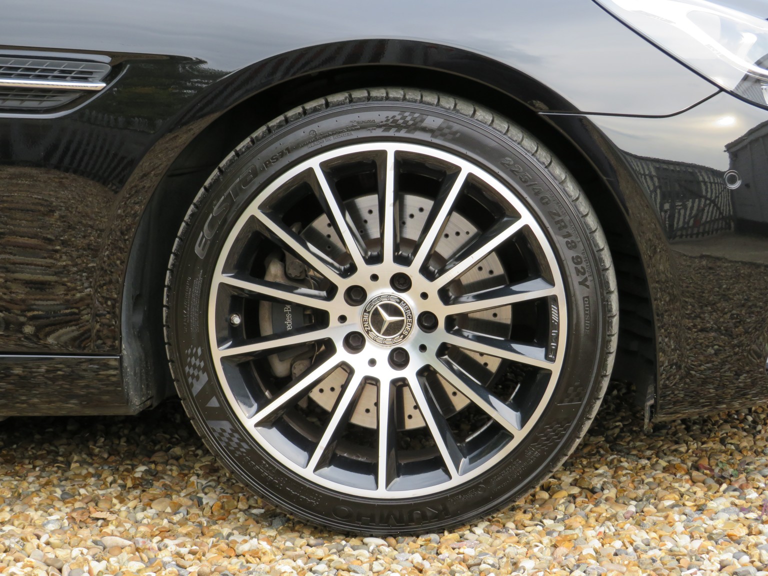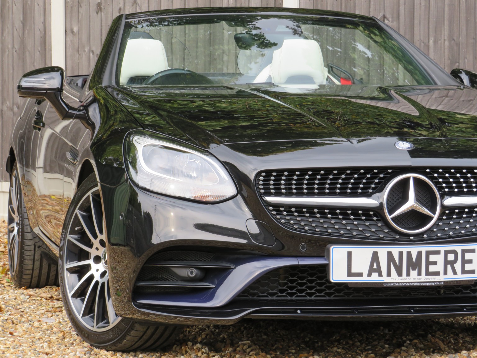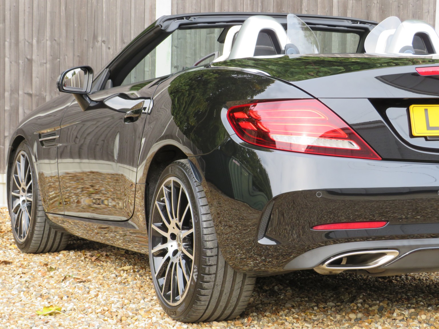 Specification includes AMG Night Package, Exclusive two tone black and white quilted and perforated bespoke leather upholstery with detailed red stitching. Airscarf neck level heating, front and rear Parktronic parking guidance, heated seats, rain sensor, cup holder, Air Guide (glass wind deflectors), aluminium roll bars, SD Satellite Navigation preparation, nine speed automatic gearbox, AMG Line Styling Package, AMG Sport Package, 18 inch AMG multi spoke alloy wheels, auto lights, cruise control, Bluetooth telephone, Bluetooth audio plus much much more!